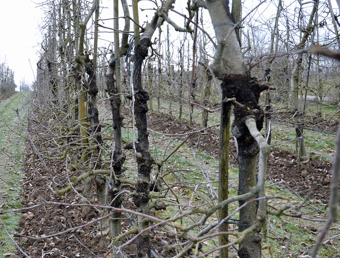Black cankers on apple trees caused by Diplodia bulgarica