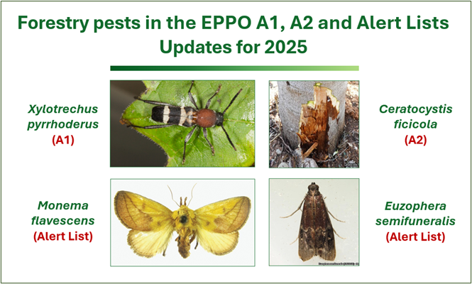 Members of the Panel received an update from the EPPO Secretariat on the recent additions of forest pests to the EPPO A1, A2, and Alert Lists and they also discussed a recently approved procedure for delisting of pests from EPPO A1 and A2 Lists.