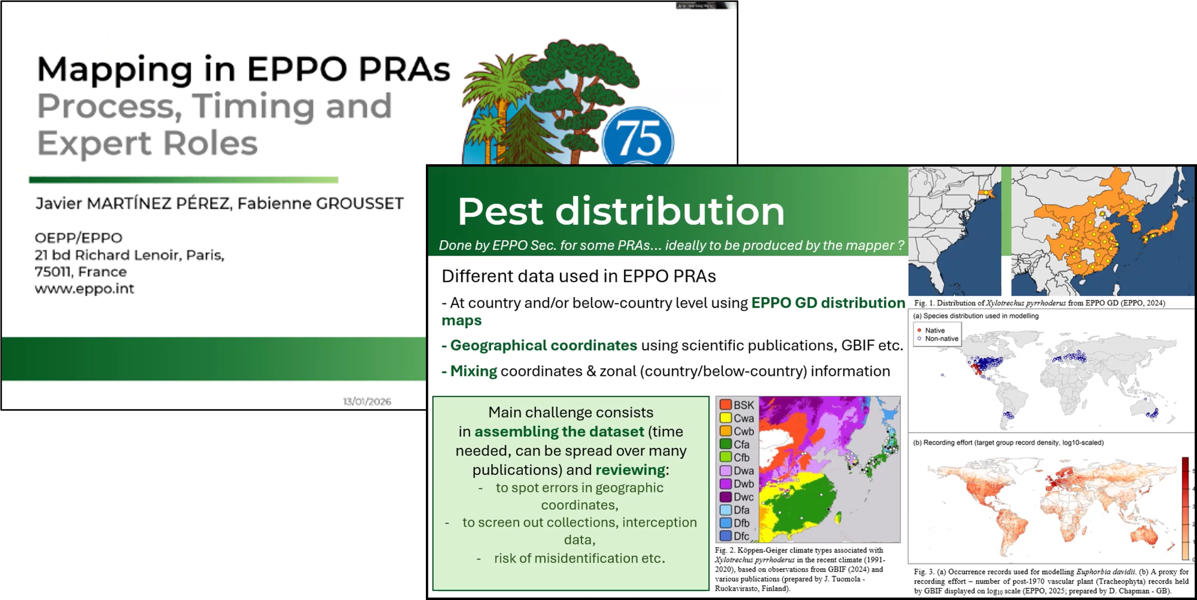 To address this, a webinar was organised to provide a platform for experts to share their experience in mapping and modelling tools and data sources, with the objective to enlarge the pool of expertise contributing to EPPO PRA maps and models and strengthening their scientific robustness.